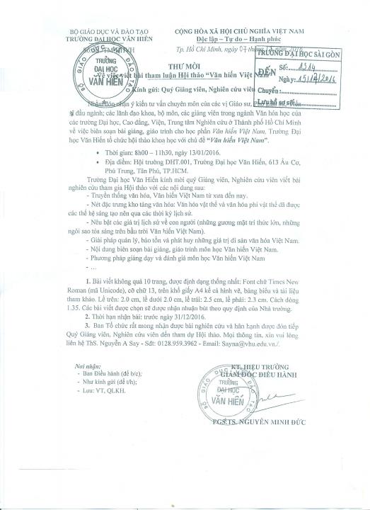 Thư mời về việc viết bài tham luận Hội thảo "Văn hiến Việt Nam"